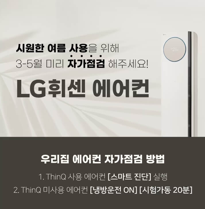 LG는 5월 31일까지 에어컨 무상 사전점검 서비스를 실시합니다.