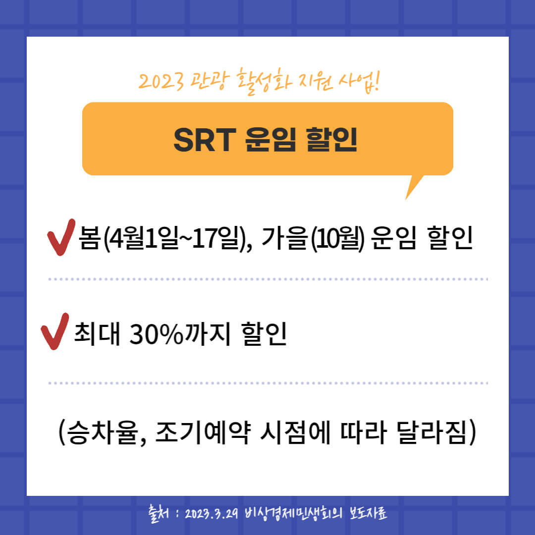 4월부터 본격 여행이 많아지는 시즌이죠. 특히 5월은 가정의 달로 가족 단위로 나들이 및 여행이 많아집니다. 이에 맞춰 여행정부가 열차 운임을 지원합니다. KTX, SRT, 관광열차 운임은 30%에서 최대 50%까지 할인해 줍니다.